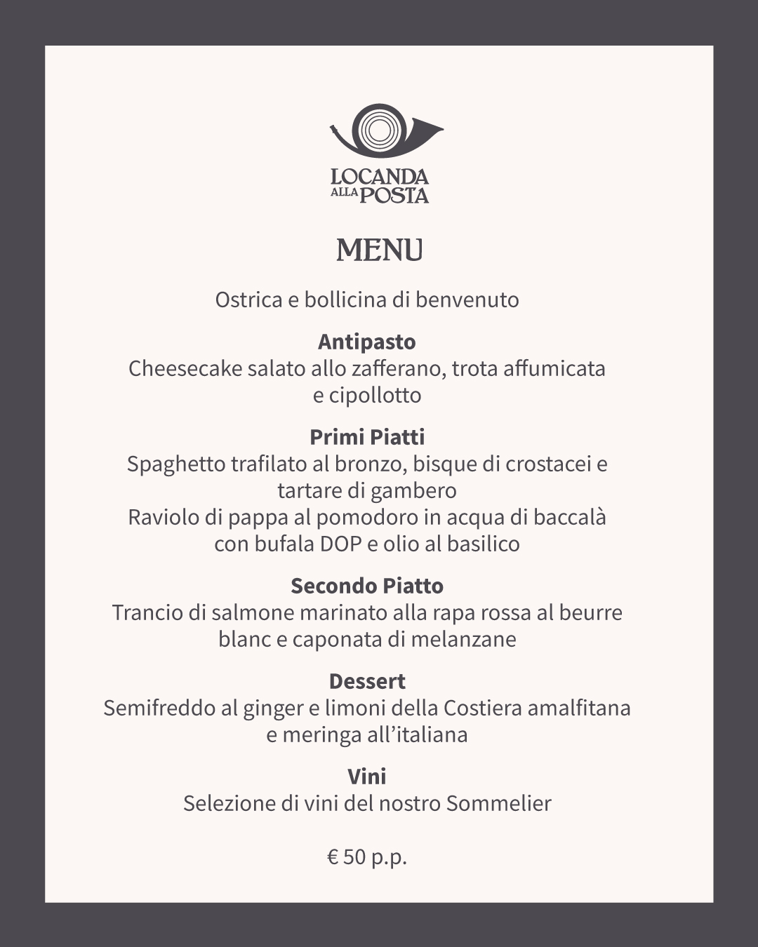Save the date for Saturday, February 14 at the Locanda Alla Posta.