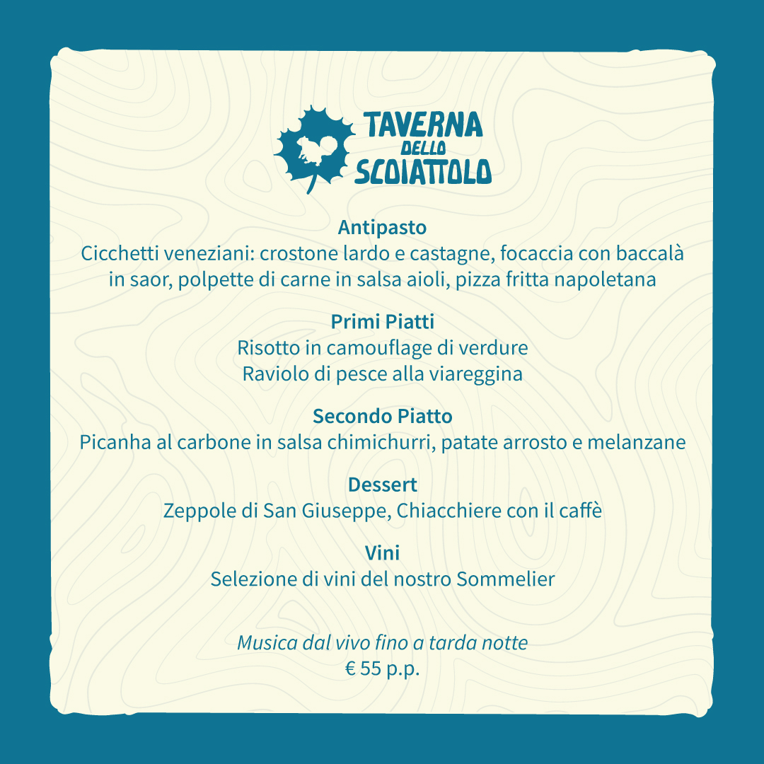 Una serata colorata all’insegna dell’allegria e del divertimento in un suggestivo rifugio immerso nel bosco, a mille metri di altitudine. Si inizia alle 20 con un menu a tema ispirato alle città del Carnevale più conosciute al mondo e si prosegue con una lotteria a premi e musica dal vivo fino a tarda notte. Il costume di Carnevale non è obbligatorio, ma per la maschera più bella, sia di gruppo che singola, ci sarà una sorpresa!